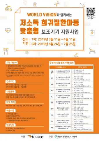 서울시동남보조기기센터, 월드비전과 함께하는 ‘저소득 희귀질환아동 맞춤형 보조기기 지원사업’ 실시 안내
