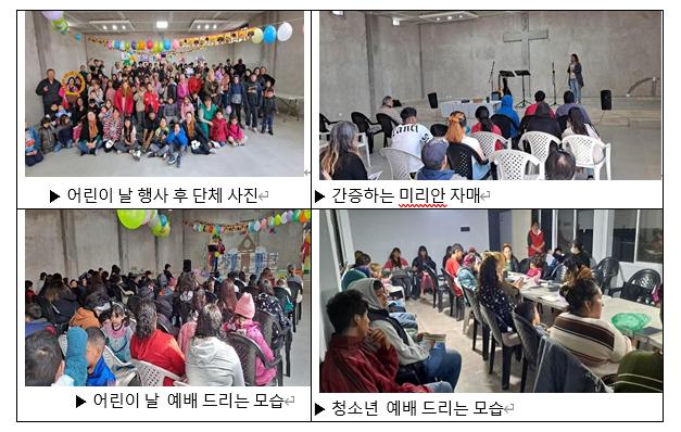 주님의 은혜 가운데서 아가페 개척 교회는 계속 성장해 가고 있습니다. 매주 수요 성경공부, 금요일 저녁집회와 토요일 주일학교 및 남선교회 모임과 매주 일요일 예배로 하나님께 찬양과 경배를 드리고 있습니다. 감사한 것은 새롭게 나온 신자들이 은혜 받고 매주 예배에 참석하고 있습니다. 미리안 자매는 교회 앞을 지나가다가 찬송 소리를 듣고 교회에 출석하였습니다. 그리고 딸과 남편까지 교회에 출석하고 있습니다. 그 자매는 위장병을 앓고 있었습니다. 그런데 교회에서 합심 기도함으로써 치유가 되었습니다. 또한 남편도 기도 모임에 참석해서 은혜 받고 지병이 회복되는 은혜를 입었습니다. 그래서 간증도 하고 열심히 교회 봉사를 하고 있습니다. 오스카 형제 부부가 있습니다. 이 형제는 간질병과 영적 눌림에 있었는데, 가정을 방문하고 예배와 기도 이후에 몸이 회복되어서 댄서팀의 리더로 열심히 섬기고 있습니다. 야간에 건물 청소를 부부가 하면서도 교회 봉사와 청소년들을 위하여 열심히 봉사하고 있습니다. 복음의 능력은 영혼을 구원하고 영육 간의 치유와 회복을 통해서 하나님의 자녀로서 삶을 살아가고 있습니다.